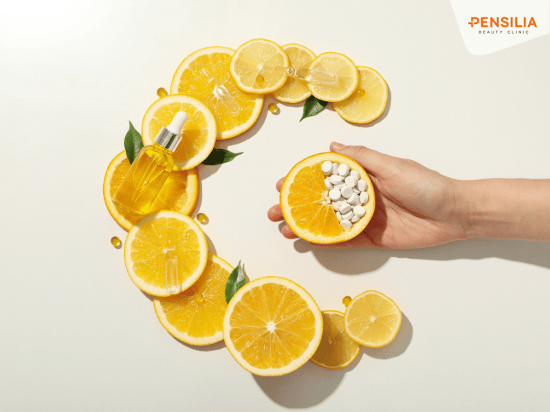 Vitamin C được biết đến là một chất chống oxy hóa mạnh mẽ, giúp bảo vệ da khỏi các tác động có hại từ môi trường như tia UV và ô nhiễm. C còn có khả năng kích thích sản xuất collagen, giúp da trở nên căng mịn và đàn hồi hơn. Ngoài ra, vitamin C còn giúp làm sáng da. Giảm thiểu sự xuất hiện của các vết thâm nám và tàn nhang.