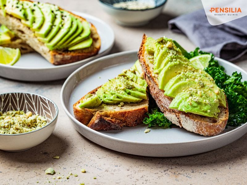 Bơ là loại quả giàu axit béo không bão hòa. Giúp duy trì độ ẩm cho da và ngăn ngừa tình trạng khô da, bong tróc. Bên cạnh đó, bơ còn chứa nhiều vitamin E. Chống lại quá trình oxy hóa và lão hóa sớm. Không chỉ vậy, việc ăn bơ thường xuyên cũng giúp cơ thể no lâu hơn. Từ đó hỗ trợ việc kiểm soát cân nặng hiệu quả.