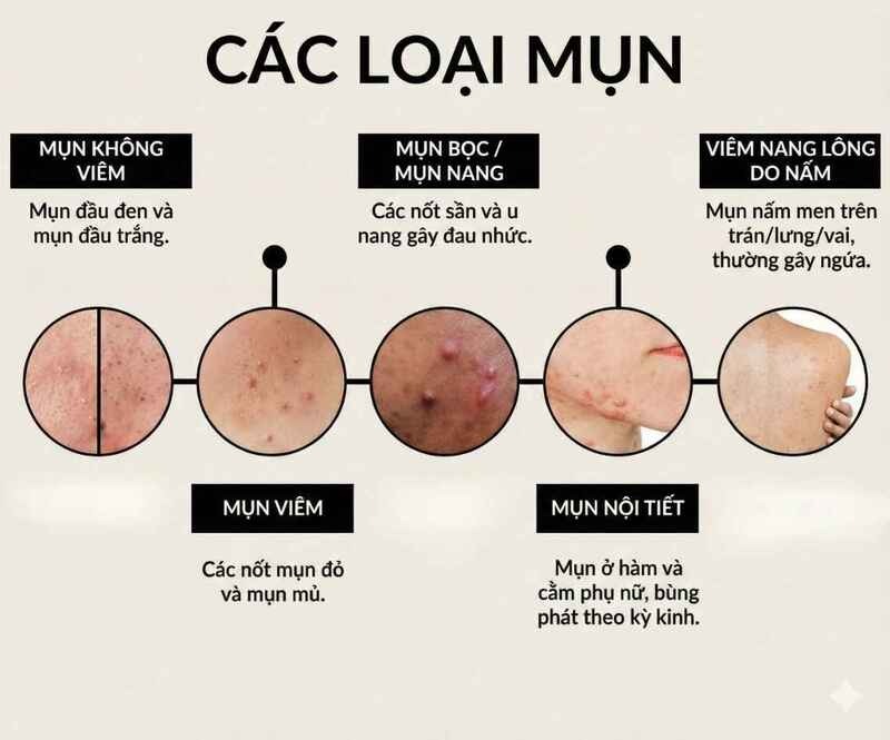 Nếu điều trị sai loại mụn, da dễ kích ứng, viêm kéo dài và để lại thâm sẹo. Do đó, bước đầu tiên trong cách trị mụn đúng là xác định chính xác loại mụn.