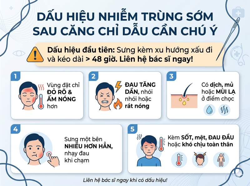 Dấu hiệu nhiễm trùng sớm nhất sau căng chỉ cần chú ý