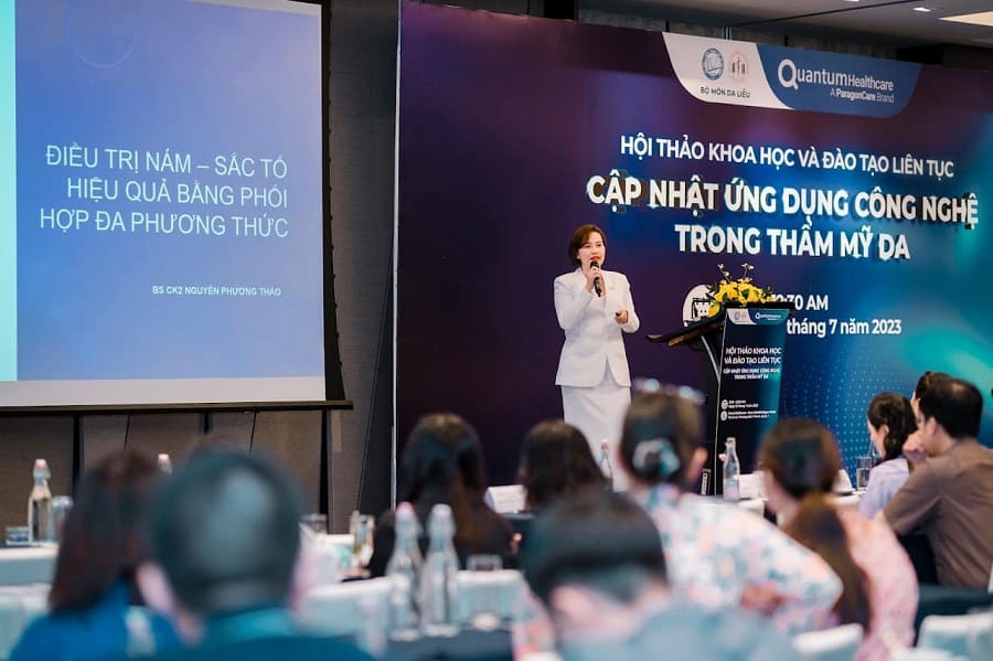 Bác sĩ Nguyễn Phương Thảo báo cáo khoa học công nghệ mới trong thẩm mỹ da