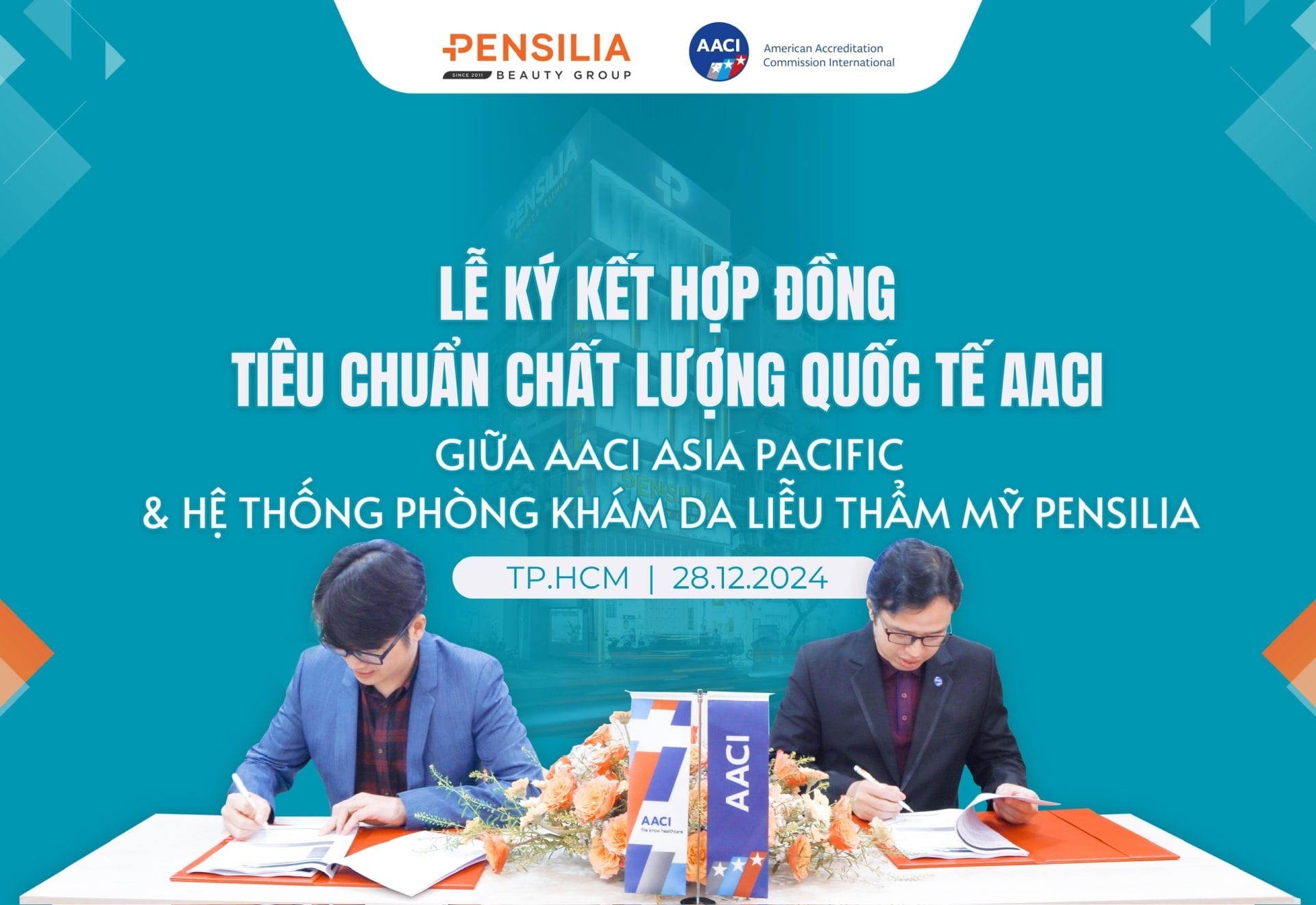 Ngày 28/12/2024, Pensilia Beauty Group tự hào tổ chức lễ ký kết triển khai dự án “Kiểm định chất lượng theo tiêu chuẩn quốc tế AACI”. Đây là cột mốc quan trọng. Khẳng định cam kết không ngừng nâng cao chất lượng dịch vụ và uy tín thương hiệu. Trên thị trường làm đẹp và chăm sóc da liễu.