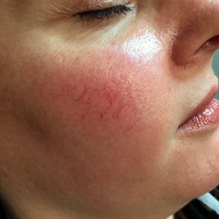 Giãn mạch máu ở mặt là tình trạng giãn các mạch máu nông, nhỏ kích thước 0,1-1,5mm. Thường xuất hiện ở những làn da mỏng, yếu, dễ tổn thương như đầu mũi, vùng má, vùng hai bên thái dương, dọc theo vùng trước xương hàm, dưới má. Nguyên nhân của tình trạng này liên quan đến tác động của ánh sáng mặt trời, lão hoá da. Hoặc có yếu tố di truyền trong gia đình. Sử dụng các sản phẩm thoa có chứa corticoid trong một thời gian dài…