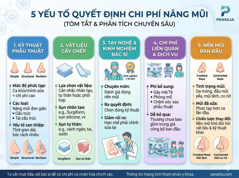 5 nhóm yếu tố quyết định chi phí nâng mũi