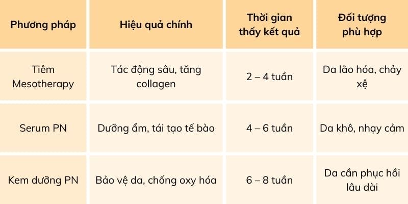 So Sánh Các Phương Pháp Ứng Dụng PN Trẻ Hóa Da