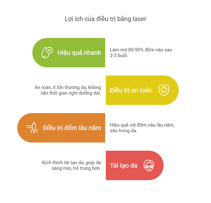 So với kem và peel hóa học, công nghệ laser và ánh sáng vượt trội về tốc độ, hiệu quả, và độ an toàn khi điều trị đốm nâu đồi mồi, đặc biệt với những trường hợp khó. Chúng nhắm chính xác vào sắc tố, không làm tổn thương da khỏe mạnh, và mang lại kết quả lâu dài nếu kết hợp chăm sóc da đúng cách.